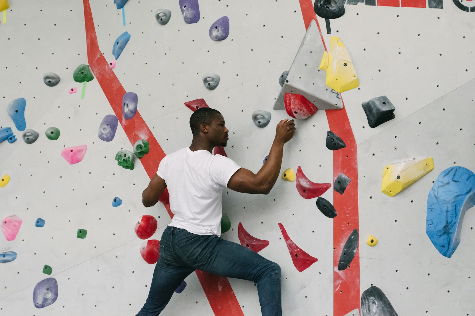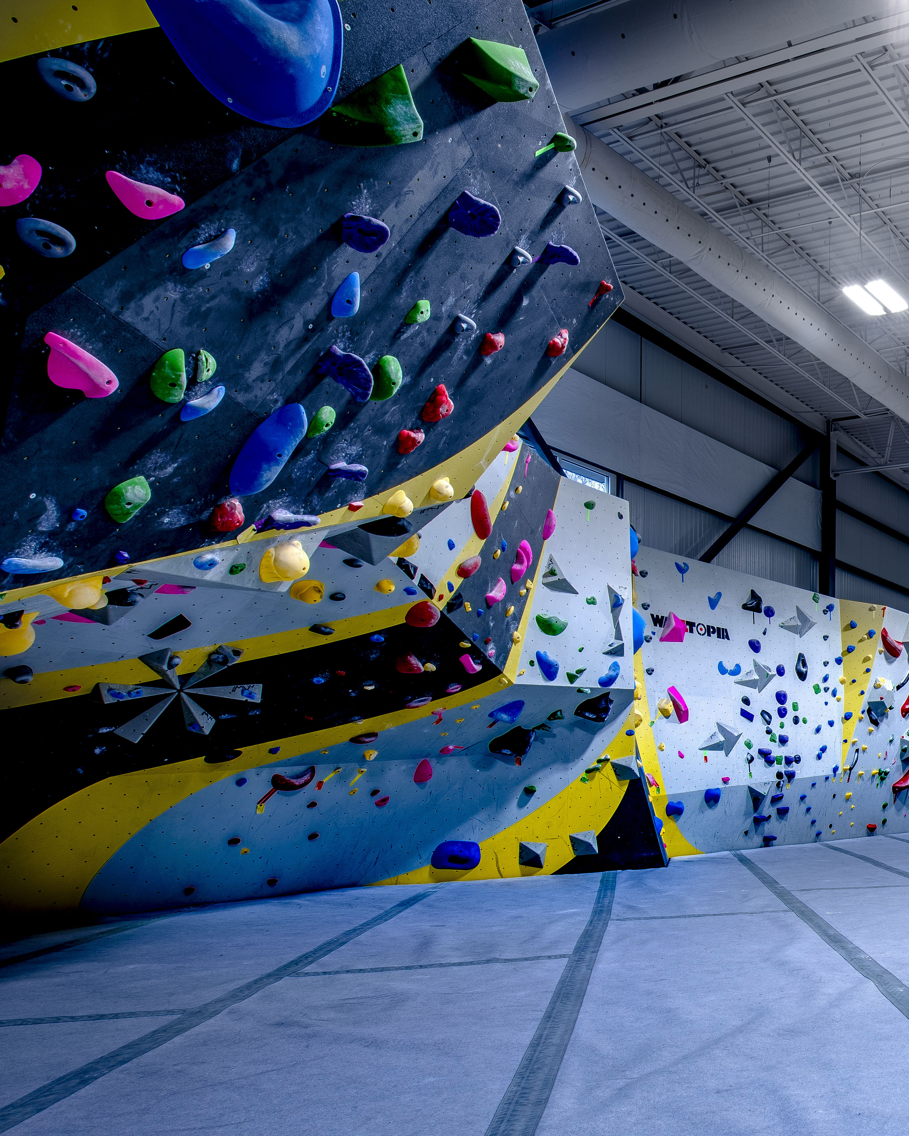 Bouldering is unroped climbing on short walls ranging from 10 - 18 ft high. All of our locations have expansive bouldering areas. An autobelay is a mechanical device that helps climbers descend from a taller climbing wall without a belayer. We teach everyone how to boulder and use autobelays in our climbing orientation during your first visit. No prior experience is needed!